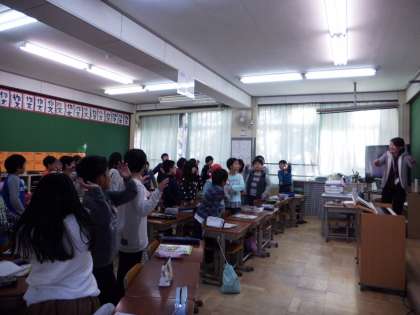 4年生は教室で振付を確かめながら歌の練習
