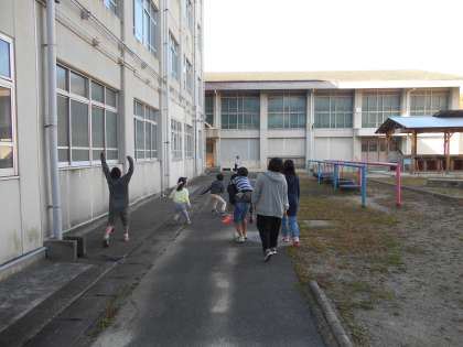 竹の里小学校では,月に一度,「たてわりあそび」があります。1年生から6年生までが一緒に遊びを考え,中間休みに遊ぶというものです。青空のもと,子どもたちは元気いっぱい外に飛び出していきます。「だるまさんがころんだ」「ドッジボール」「けいどろ」中には自分たちで考えたゲームをするグループもあります。普段の授業ではなかなか触れ合えることのない上の学年のお兄さん・お姉さん。「たてわりあそび」を通して,より仲良くなってほしいと思います。
