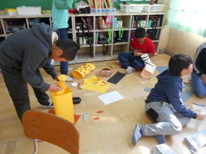 いよいよ学芸会が迫ってきました。劇の練習にも一段と熱がこもっています。先週には,劇で使う道具を自分たちで作りました。5年生みんなで協力してひとつの劇を作っています。