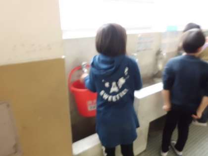 終わりには,進んでバケツの水替え