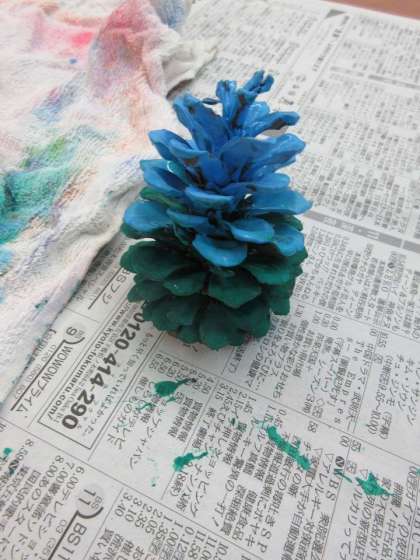 あおぞら学級では,今日から図工で松ぼっくりクリスマスツリーの制作を始めました。