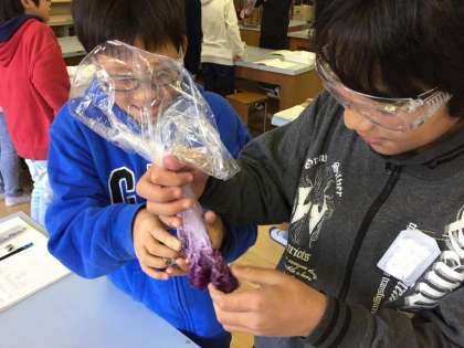 今回の実験は,ムラサキキャベツを使って水溶液が酸性・中性・アルカリ性のどの性質であるかを調べるというものです。