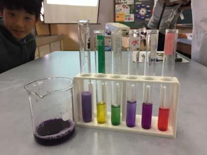 水溶液が赤や黄色,緑やピンクなど,色鮮やかに変化しました!