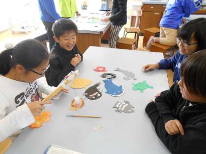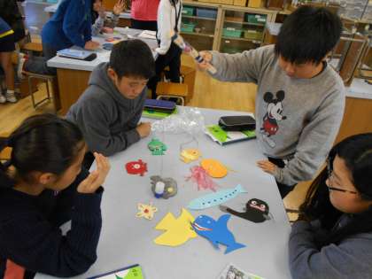 5年の理科の学習で、電磁石の性質を利用したつりざおを作りました。今日はそのつりざおをつかってつりゲームをしました。魚の中には、いろいろな先生の写真が!!「やったー!」と喜ぶ子、「ギャー、マイナスポイントだぁ!」と悲しむ子・・・楽しく活動しながら電磁石の性質について学ぶことができました。
