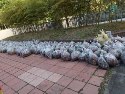 落ち葉を集めた袋を運ぶときには