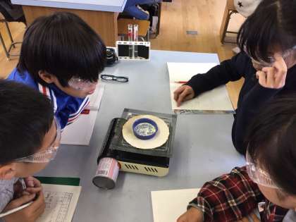 今日の実験は,溶けた後の水溶液を熱することで,再び金属を取り出すことができるのか