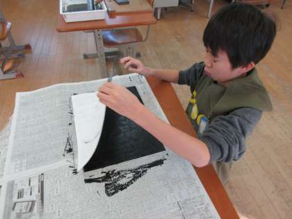 今日は高学年児童の木版画完成の日!