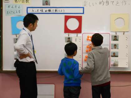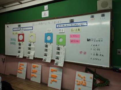 今日はあおぞら学級で的当ての点数決めをしました。