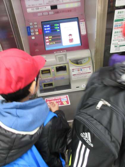 今日は,低学年児童も自分でお金を入れて切符を購入しました。