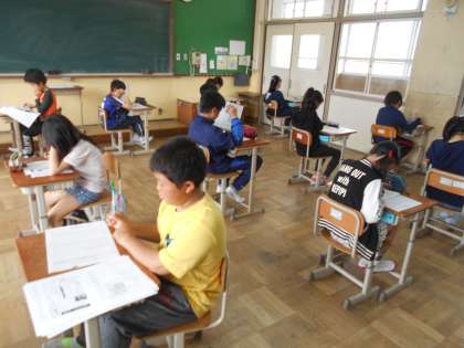 来週,全国学力・学習状況調査を行います。今日は来週に向けて,練習問題に取り組みました。6年生になり,学習内容も難しくはなりますが,それぞれがしっかり学習と向き合い,自分の力を高めていってほしいと思います。