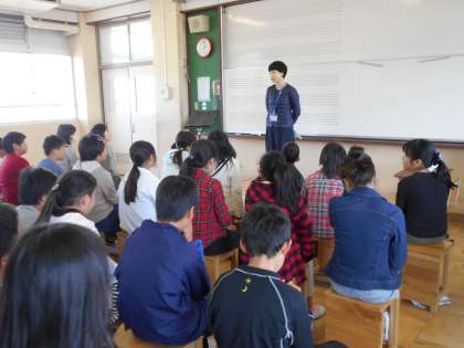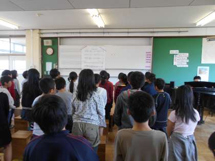 今年度,音楽の授業はスクールサポーターの十川先生に指導していただきます。今日はうたう姿勢について教えていただき,さっそく合唱に取り組みました。透き通るような歌声で歌うことができました。これからも美しい歌声を響かせてほしいと思います。