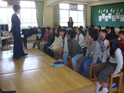 そして,6年生は,音楽の先生との出会いです。先生のお話を食い入るように聞いています。