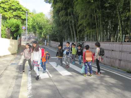 今日登校してきた1つのグループは,高学年児童が横断歩道を渡る際に,低学年児童たちを守る姿が見られました。