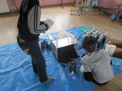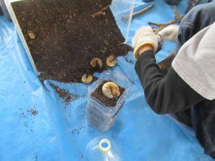 今日は手作りの飼育ケースにカブトムシの幼虫を引っ越しさせました。