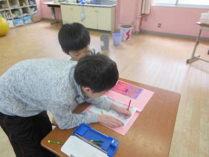 そういって高学年児童が低学年児童の連絡帳に赤鉛筆で下書きしていました。
