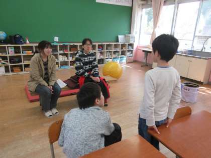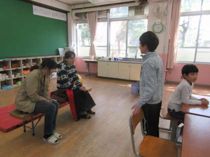 参観授業では,先生たちにする自己紹介をお母さんたちにしました。