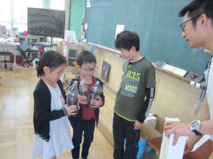 日直さんが代表で受け取り,みんなでお礼を言いました。