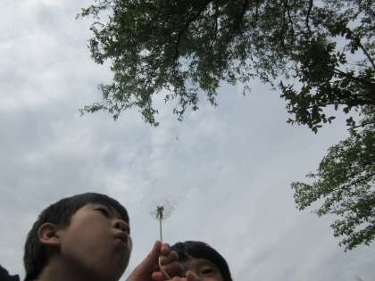 今日の休み時間にたんぽぽの綿毛飛ばしをしました。