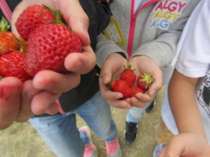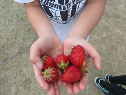 嬉しそうな子どもの顔も,イチゴに負けないくらい輝いていました。