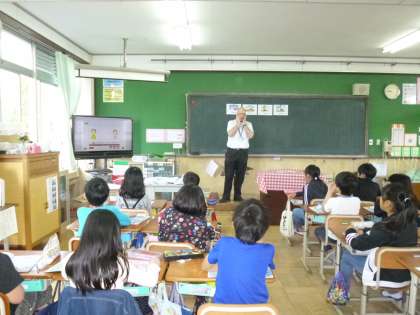 今年度もダグラス先生に来ていただいて,一緒に学習しています。今日は,前時に学習した天気の言い方について,チャンツや歌,問題を通して,より慣れ親しむことができました。