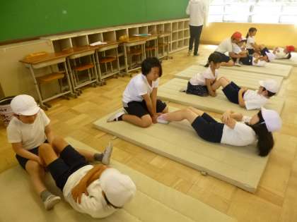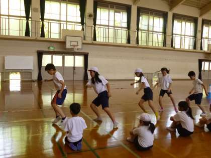 全校でスポーツテストをしました。たてわりグループで校内を回って,全部で6つの種目に挑戦しました。6年生がリーダーとなってグループをうまく引っ張ってくれたおかげで,予定した時間より早くスポーツテストを終えることができました。