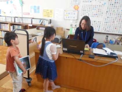 5時間目に1年生全員で図書室に本をかりに行きました。1年生にとって初めての図書室での貸出し。たくさんがある図書室で自分のかりたい本を見つけて,とてもうれしそうでした。これから,様々な本に出会って,知識を深めてほしいとと思います。