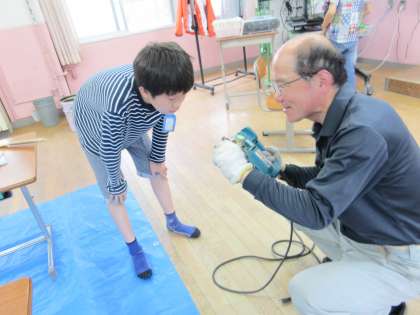 初めての電動工具にドキドキわくわく。