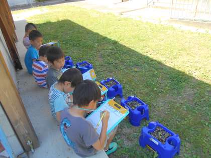 「毎日の水やりをかかさず行っていきたい!。」とこれからのあさがおの成長を楽しみにしている子どもたちでした。
