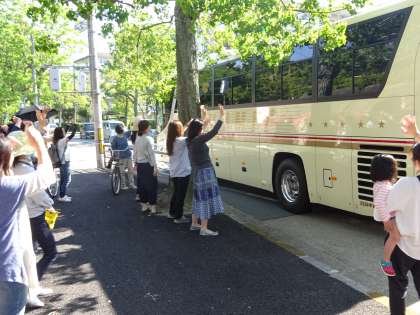 その後,保護者のみなさんや教職員に見送られ,6年生全員,元気に出発しました。