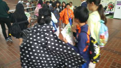 天候は,あいにくの雨ですが 子どもたちは,まず,それぞれのグループで決めた昼食のお店へと出かけていきました。食事の後は,いろいろな世界を楽しみながら,お土産を選ぶようです。