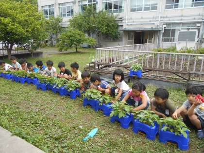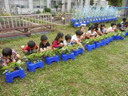 4月にみんなで種を植え,たくさんの芽が出て成長をし続けています。