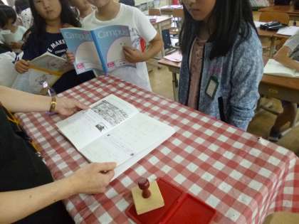 スキルアップタイムの時間に算数のノート検定があり,自分の一番自信のあるページを校長先生に見ていただきました。