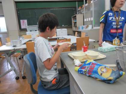 給食時間が少し遅くなってしまったので,昼食は職員室の先生たちが準備してくれていました。