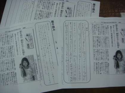 「〜(この新聞記事から)『髪がつなぐ物語』の本のことも知ることができ,今回の親子読みに感謝します。」