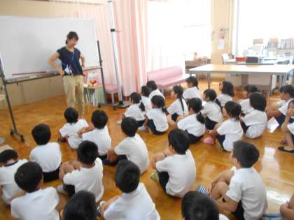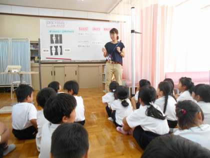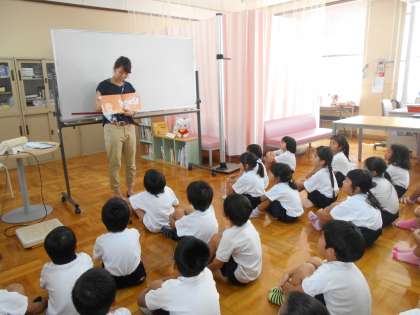 絵本の読聞かせをもとに,「たくさん寝ること」,「しっかり食べること」,「運動すること」の大切さについてみんなで確認しました。