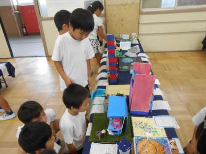 他の学年の作品を見て子どもたちは,「わー。すごい!。」「来年作ってみたいなあ。」「どうやって作ったんだろう。」と感激している様子でした。
