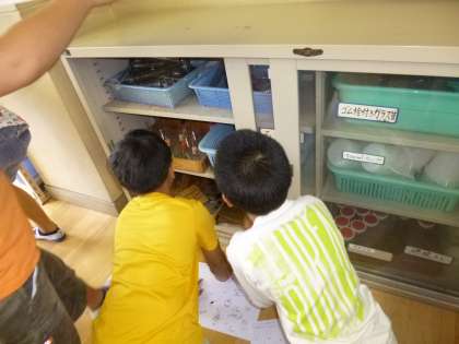 これから理科室で実験をすることが増えてくる4年生。今日は理科室を探検し,理科室にあるものを探したり,使い方の約束を確認したりしました。楽しみながらも真剣に,学習に取り組む姿が見られました。