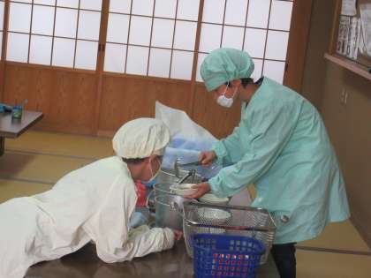 2年生たちの食事の早さに驚きながら,あおぞら学級全員が何とか完食。
