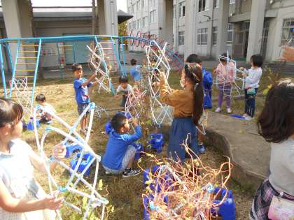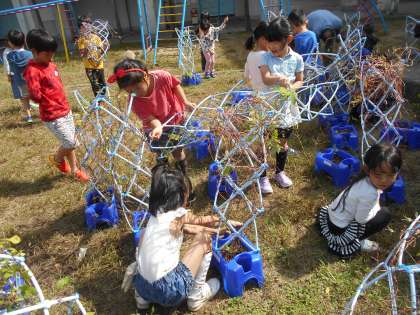 今後は,つるを乾燥させた後,秋見つけで拾った木の実や葉っぱなどをつかって飾り付けをします。どんなリースになるのか楽しみです。