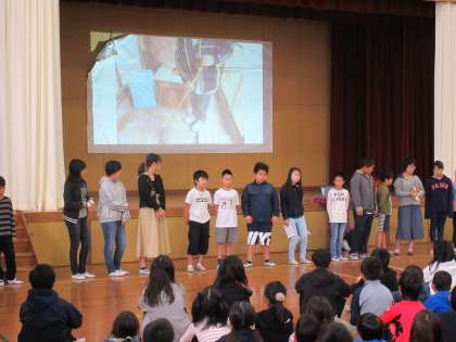 今日の児童朝会では,飼育栽培委員会の委員会活動発表がありました。