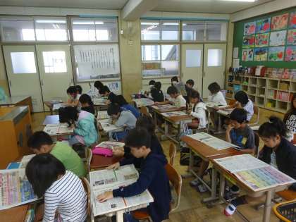 10月18日。朝の読書の時間にみんなで新聞を読みました。学校での学習のために新聞社が提供してくださったこども新聞です。どんな記事があるのか,みんなで新聞に目を通しました。「知っているニュースがあったよ。」「クイズコーナーみたいなところもあったね。」「明日も読んでみたいな。」など,楽しそうな声がたくさん聞こえてきました。普段から読書が大好きな3年生。新聞を楽しそうに読む姿が印象的でした。