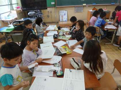 10月25日。社会科の授業で買い物調べをしました。1週間,お家の人が何を買ったかを調べ,今日はそれをまとめました。「レシートがたくさんあって大変だね。」「食料品はどこのお店で一番多く買っているかな。」「みんなの買い物の数を合わせるととてもたくさんになったよ。」など,自分たちで手に入れた情報を頑張って集約しようとする姿が見られました。作業中はとても大変そうでしたが,みんなで1つの数にまとめられたときの子どもたちの満足そうな表情がとても印象に残っています。レシートのご提供など,ご協力いただいた保護者の皆様,お忙しいところにもかかわらず本当にありがとうございました。