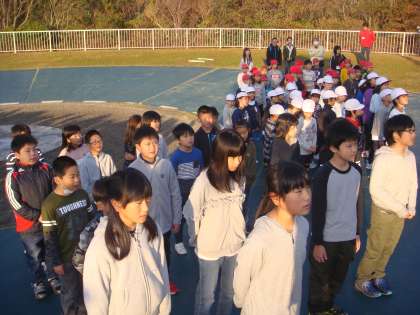 竹の里小学校は,いちばんに集合をしていたので、朝の6:45から,全員で校歌の練習をしていました。