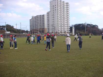 磯観察中,雨がパラパラと来たので,時間を早めました。その分,時間の余裕ができたので,芝生ランドでの自由遊びにしました。