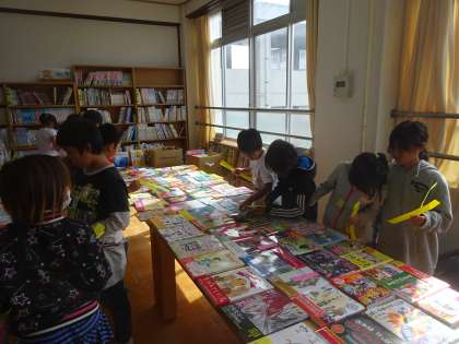 10月31日。竹の里選書会がありました。本が大好きな3年生は,持っていた自分のしおり(3枚)をどの本に挟もうか,たくさん悩んでいました。「あの本もいいけど,こっちの本もいいなあ。」「しおりの数が足りないよ。」「希望した本が図書館に来るといいな。」など,たくさんの本に触れることのできた時間でした。
