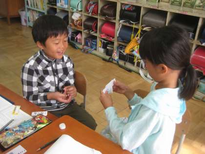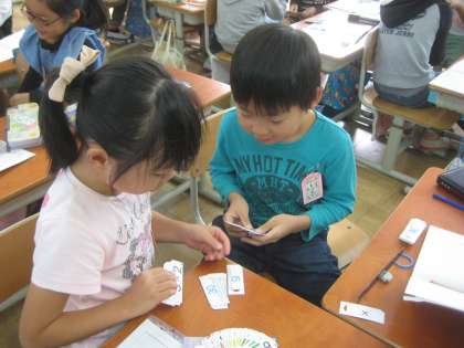 かけざんの学習で,9の段まで学習しました。今は九九をすらすら唱えることができるように毎日練習をしています。九九カードを使って友達と練習をすると,楽しく覚えることができます。