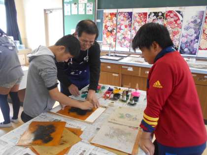 「伝統文化を探ろう!」というテーマのもと,和太鼓に引き続き,今回は京都の伝統文化「友禅染」と「西陣織」を体験しました。友禅染や西陣織の歴史を教えていただいたり,実際に体験させていただいたりする中で,伝統文化のすごさや職人の方々の思いなど,とても大切なことを学ぶことができました。子どもたちの感想の中には「100年以上も前から続いている伝統をこれからも守っていくことが大切だと思う」や「伝統文化を大切にする心を忘れないようにしたい」などがありました。