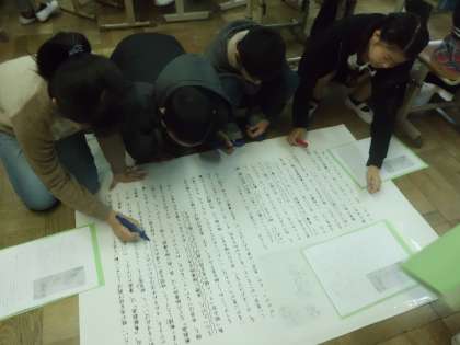 国語の学習で,筆者のものの見方や感じ方を読み取る学習をしています。今日は「鳥獣戯画」の絵を文章を照らし合わせながら読み進めていきました。「筆者はこんな見方をしてるんや!」や「この部分のことを取り上げているんだ」など,絵と文章を照らし合わせることでたくさんの発見をしていました。学習のゴールでは,絵画コメンテーターになって名画を紹介する鑑賞文を書きます。今から楽しみです!