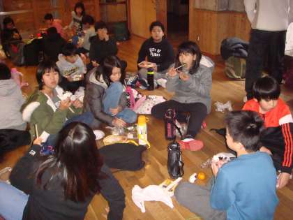 今日から3泊4日。竹の里小学校の5年1組は,1棟を利用して生活をします。