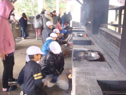 また,他のグループは出来上がった様子。味見をしています。